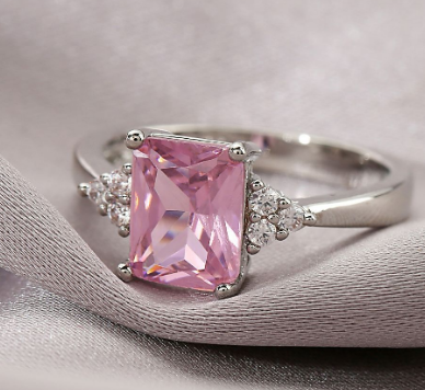 Radiant Zirconia Pink Ring, Elegant 925 Silver